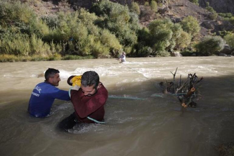 Tehlikelere adeta meydana okuyarak Zap Suyu’na giren vatandaşlar, halatlara bağladıkları ağaç ve odun parçalarını büyük zorluklarla kıyıya çekiyorlar. Sudan çıkardıkları odunları bir süre güneşte kurutan vatandaşlar daha sonra da bu odunları yakacak olarak kullanıyorlar.