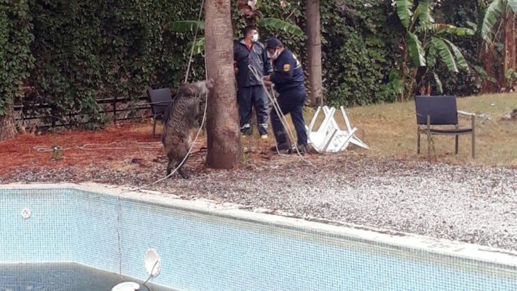 Muğla’nın Marmaris ilçesinde şehir merkezine inen bir domuz turistlerin yüzdüğü otel havuzunda mahsur kaldı.
