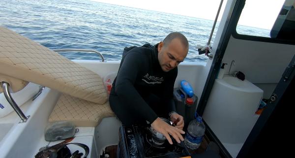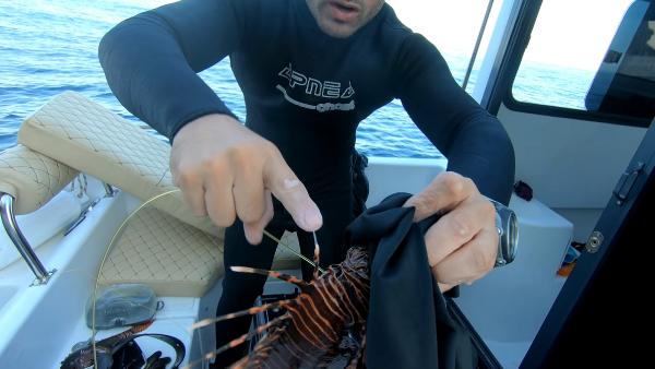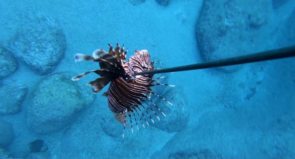 Aslan balığını avladığı anı ve acı çektiği anları da görüntüleyen Özsarı, “Çekimler sırasında yemek için vurduğum aslan balığının dikenlerini kesmek için tutarken parmağıma battı. Parmağım diğer parmağımın iki katına yakın şişti. Çekime devam edecekken acıdan dolayı duramadım ve hastaneye gitmek zorunda kaldım” dedi.