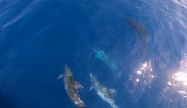 Yunuslar, turist teknesinin yanında yüzdü