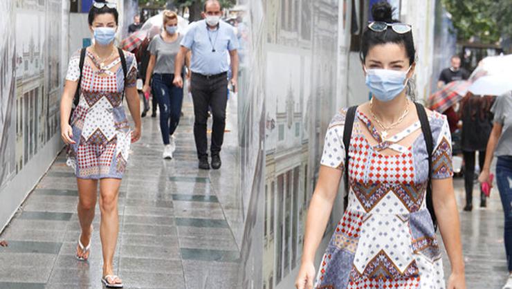 Merve Boluğur önceki gün sağanak yağmura aldırış etmeden parmak arası terlikleri ve yazlık elbisesi ile Nişantaşı turuna çıkmıştı.