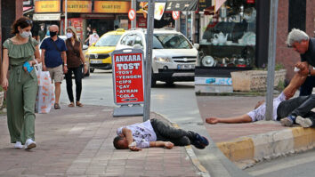 Antalya’da güpegündüz alkol alıp kaldırımda sızan adam yürekleri ağza getirdi. Esnaf, ayaklarını yola doğru uzatan…