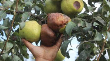 Bursa’da 3 ay önce yağan doludan etkilenen yüzlerce ton armut dalında çürümeye terk edildi.