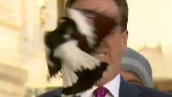 Avustralya merkezli Nine Network muhabiri Brett McLeod’un yüzüne canlı yayına girmeye hazırlandığı sırada kuş çarptı.