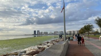 İzmir Bostanlı’da deniz, su yüzeyini kaplayan deniz marulu istilası nedeniyle renk değiştirdi.