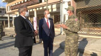 Kuzey Kıbrıs Türk Cumhuriyeti (KKTC) Cumhurbaşkanı Ersin Tatar Gazimağusa Belediye Başkanı İsmail Arter ile birlikte…