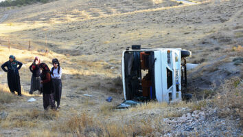 Malatya’da, fabrika işçilerini taşıyan midibüsün şarampole devrilmesi sonucu 14 kişi yaralandı.