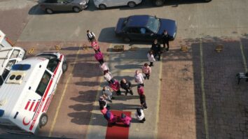Samsun’da sağlık çalışanları hastane önünde meme kanserine dikkat çekti.