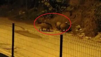 Bursa’nın Mudanya ilçesinde aç kalan domuz sürüsü, kent merkezine inerek, yiyecek aradı. O anlar cep telefonu…