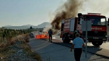 Ankara’nın Nallıhan ilçesinde Nallıhan-Ankara karayolu seyir halinde yanan bir araç itfaiyeyi alarma geçirdi.