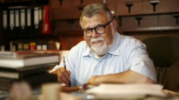 Teke Tek programına katılan Prof. Dr. Celal Şengör, ekranda yer alan “İzmir’de 6.6 büyüklüğünde deprem”…