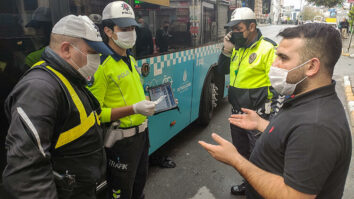 İstanbul Beyoğlu Tarlabaşı Caddesi’nde toplu taşıma araçlarına yönelik koronavirüs denetimi yapıldı.