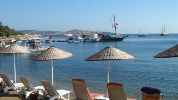 Bodrum’da, Ekim’in ayında sıcak ve güneşli hava nedeniyle sahiller yerli ve yabancı turistlerle doldu.